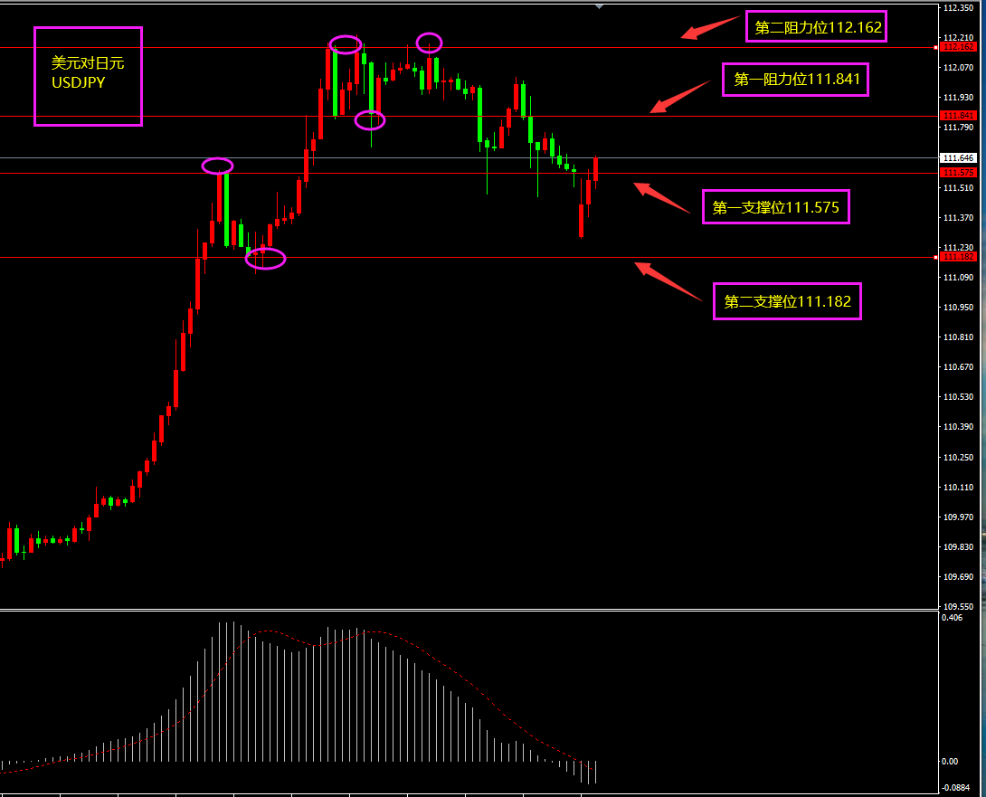 技术点评:天图英镑上周五收大阳线,因美指的高位回落以及英国数据利好促使英镑上涨,但需注意短期MAC仍位于0轴之下,空头占优,短期英国CPI虽有上涨,但仍处低位,存在降息可能,日内以看震荡为主。小时图英镑期间有连续阳线拉升,MACD位于0轴之上,多头占优,但上方为大阴线开盘价,阻力较大,日内以震荡为主。