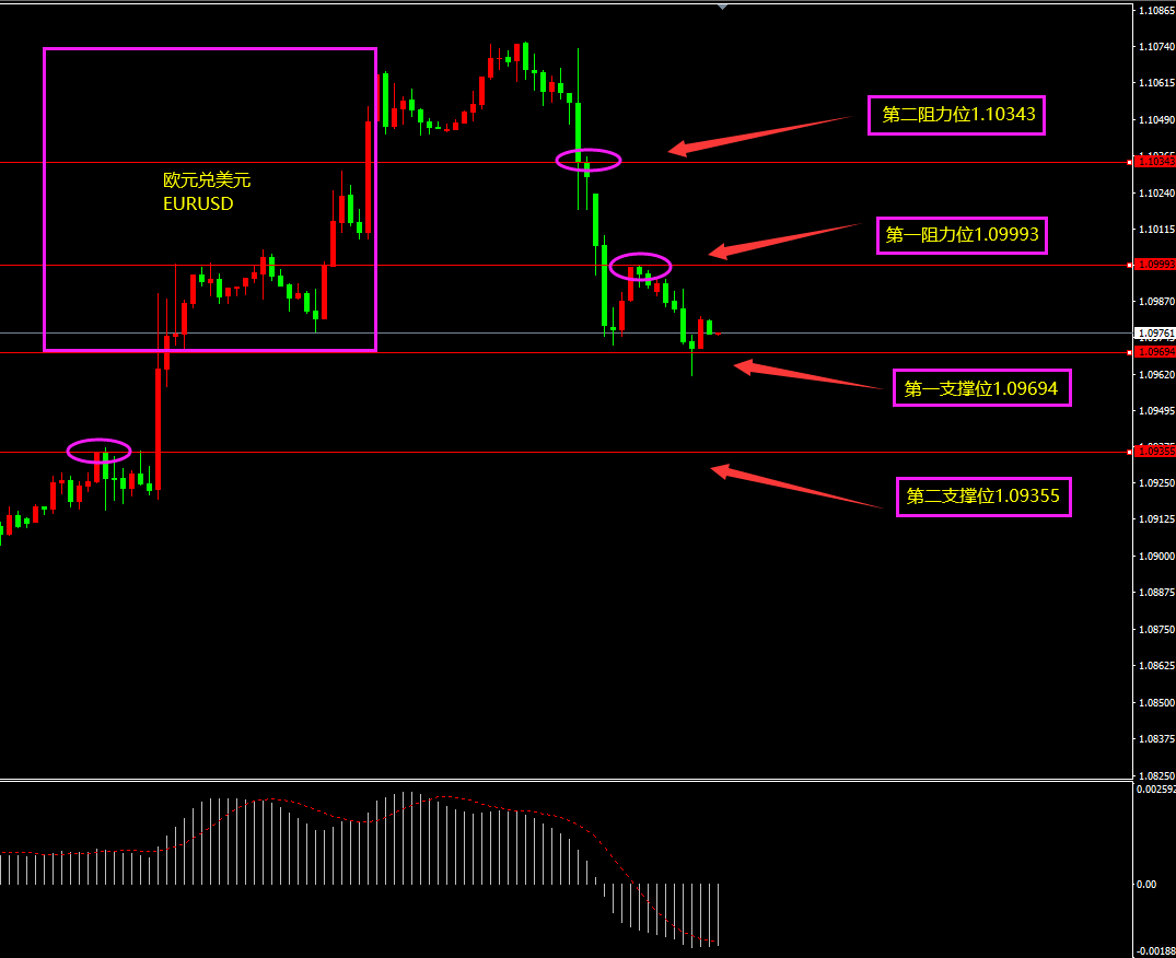 策略分析:第二阻力位附近轻仓看空,如有大阳线突破第二阻力位则转为观望。