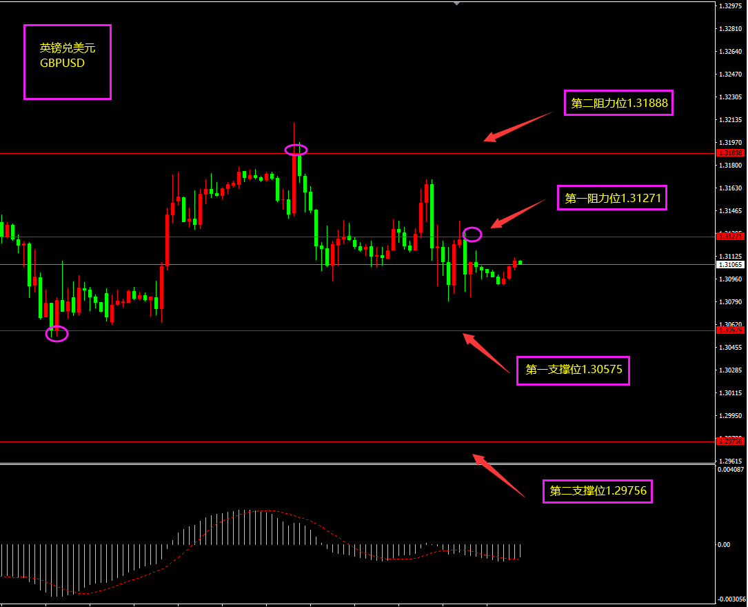 技术点评:天图英镑昨日收小阴线,因美元指数再次走强对英镑形成打压,短期MACD仍位于0轴之上,多头仍在,日内更多趋向于以震荡以及震荡上行为主。小时图英镑虽有大阴线下跌,MACD位于0轴之下,看似以空头为主,但下方大阳线构成的支撑仍未打破,多头仍在,随着美指的回落,日内继续以震荡以及震荡上行为主。