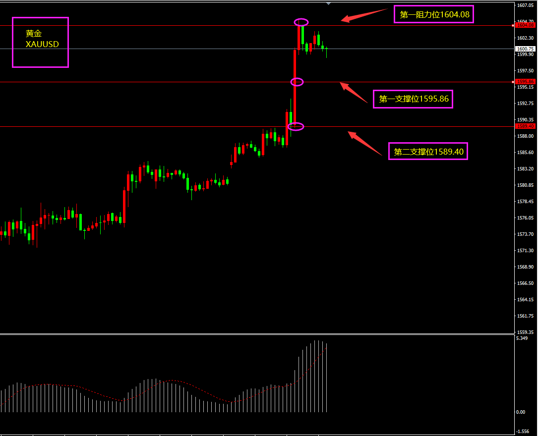 趋势分析:黄金以大阳线突破1600,关注1600是否稳住。
