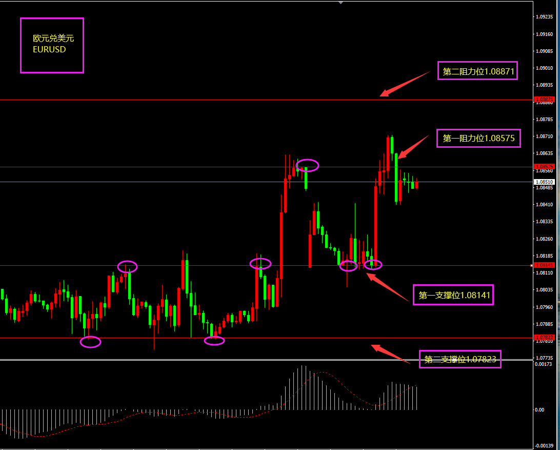 策略分析:第一、二阻力位附近轻仓看空,第一、二支撑位附近轻仓看多。