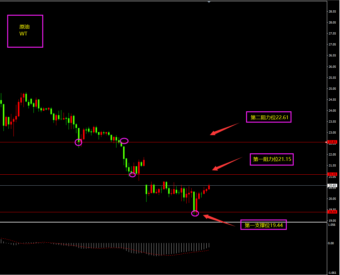 技术点评:天图原油昨日跳空低开开走,但有长下影线,暗示空头走势有所放缓,短期MACD有所上移,底部多头汇集,日内不破前低情况下将迎来大幅度反弹?小时图原油昨日一度跌破20,但跌破之后马上以2根阳线拉升上来,暗示底部买盘存在,短期MACD逐渐上移,日内更多以震荡以及震荡上行为主。